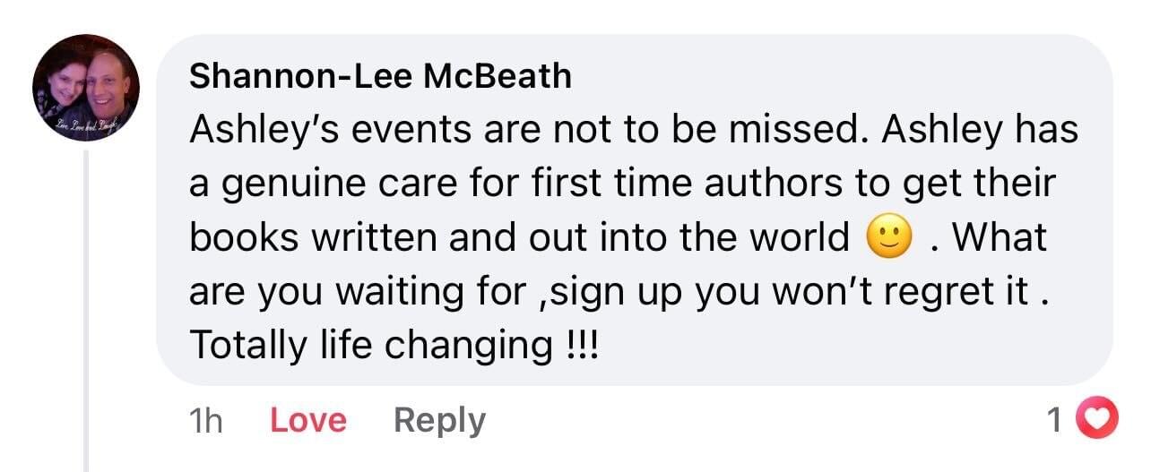 “I will absolutely work with her again on all of my books. I would highly recommend her to any single person who wants to write a book. And the best thing is, Ashley gets results! Definitely work with Ashley!”